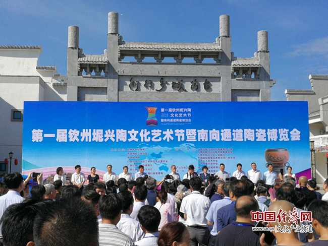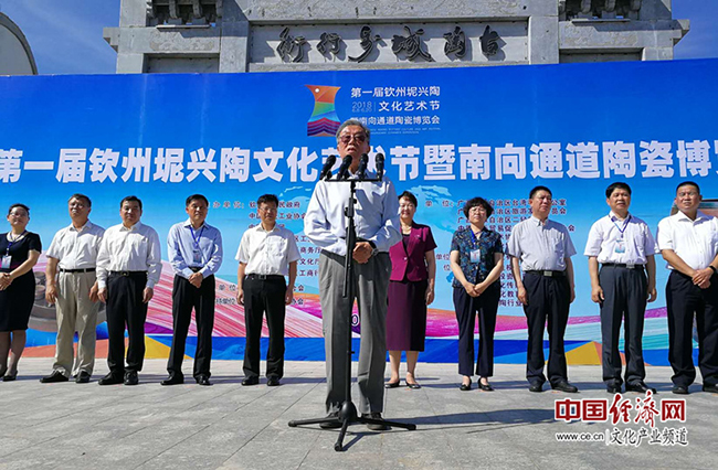钦州市委副书记、市长谭丕创 ,广西壮族自治区商务厅副厅长许瑾,国家工信部消费品工业司副司长曹学军,当代作家、学者、原文化部部长、中国作家协会名誉主席王蒙致辞先后致辞。其中,许瑾表示,新时期将充分利用“一带一路”南向通道的发展契机,拓展钦州坭兴陶市场,让钦州坭兴陶的千年传奇享誉全球。曹学军同样表示,振兴非物质文化遗产,有助于发展传统优秀文化,培育匠心精神,更好满足人们群众的日益增长的物质文化需要,提高工艺美术作品的艺术性与创新性,支持采用先进技术,促进品质革命。这次活动的举办也将对中外文化交流发挥重要作用。最后,钦州市委书记、市人大常委会主任王革冰宣布第一届钦州坭兴陶文化艺术节暨南向通道陶瓷博览会开幕。