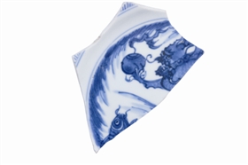 由此可见,这幅瓷画中的“鲤鱼”与“苍龙”,是分别借鉴明代纹样样式,组合而成一个新瓷画品种。明代时,“鲤鱼”和“苍龙”一个应用于民窑,一个应用于官窑,一般不会处在同一幅瓷画之中。清代对龙纹的禁用尺度放宽了,四爪以下的龙纹允许民间使用,才有可能出现鱼龙同框的现象。