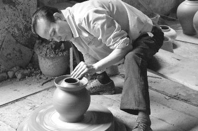 陶器越小,制作难度越大,但在梁先才那里不算什么难事。一个高不到5厘米、最大直径仅2厘米的泡菜坛,他在10分钟以内便可一气呵成。“修坯时要讲究精细度,制作时除了要有娴熟的拉坯经验,更要耐心细致,如果有一点儿分心或马虎,整个作品可能就作废了。”梁先才说。