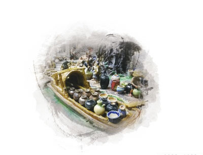 另外,作品分布着18间房屋和两艘小船,小船停靠于东平河边,一艘运柴,另一艘运瓦缸。中部最高位置是南风古灶,郁郁葱葱的大榕树下,工人们正在烧窑。为丰富作品画面,黄焯南还在不同的位置点缀了24只精致的小动物,河面上的鸭子、房间内的小猫、看门的土狗,整个画面充满着浓郁的岭南生活气息。