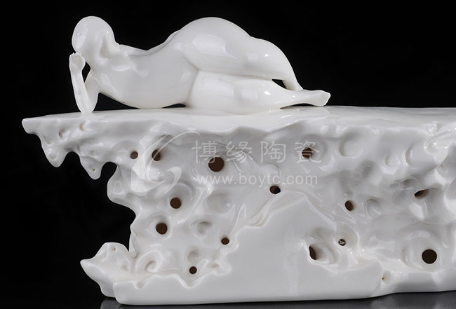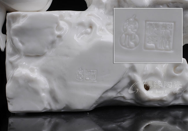 作品制作精细,质地坚密,晶莹如玉,釉面滋润似脂。