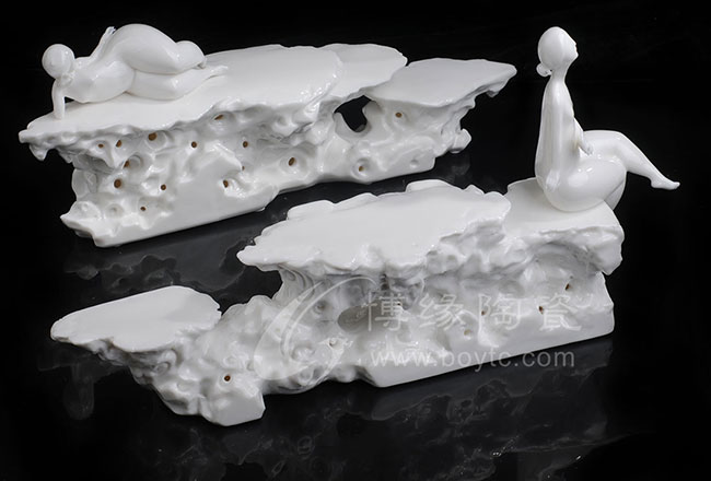 作者发扬中国白瓷玉润细腻、澄素通透的特质,大胆创新、立意妙雅纯粹、造型别致新颖、技法娴熟利落。