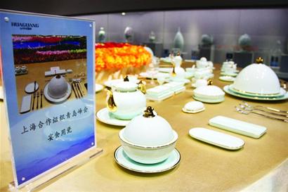 上合组织青岛峰会欢迎晚宴上,华青瓷作为欢迎宴会用瓷,端庄大气,赚足了世界各国人民的眼球。这套名为“千峰翠色”的陶瓷餐具由淄博一家企业生产。