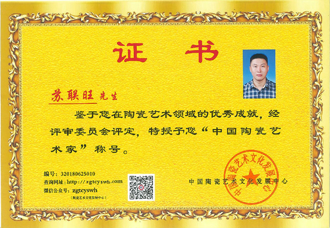 2018年6月,荣获“中国陶瓷艺术家”称号。