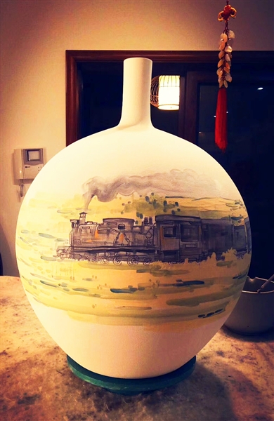 “因为乐山的佛教文化也源远流长,这两者的碰撞,让我有了很多灵感。”杜高密说,一方面乐山大佛、峨眉山、嘉阳小火车等乐山历史文化名片被其画上了瓷器,另一方面,他开始用佛禅文化元素作为瓷画基础,画出人生百态。他介绍,去年在荷兰举办了个人作品展,部分瓷艺作品被当地收藏。谈到未来,杜高密希望能成立一所瓷画院,用瓷本绘画这个新的载体将乐山文化推广出去。