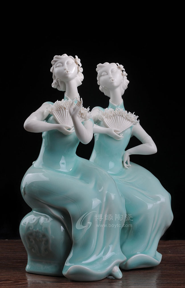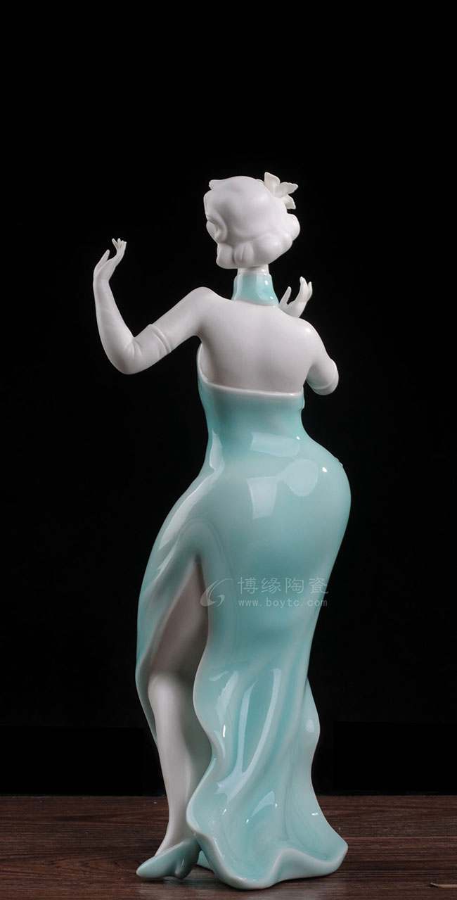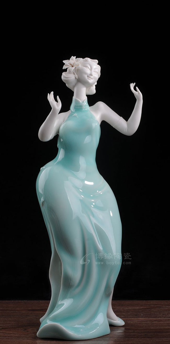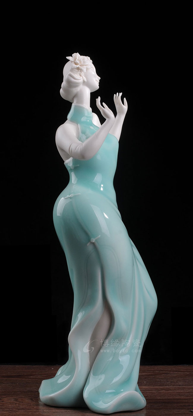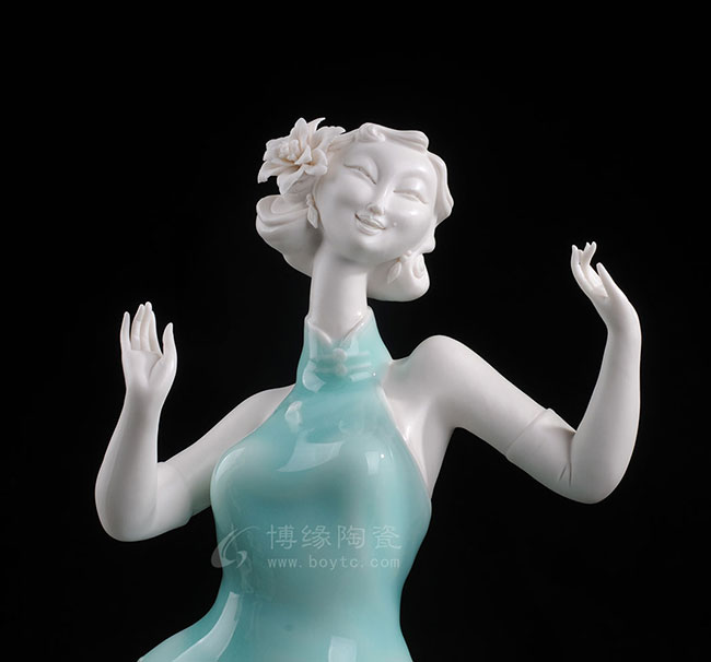 以“中国白”为胎骨,青釉为衣,并用线条流畅地表现形、神、理、趣的意味,将20世纪的大上海风韵和开放文化表现得淋漓尽致。