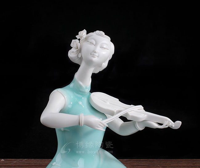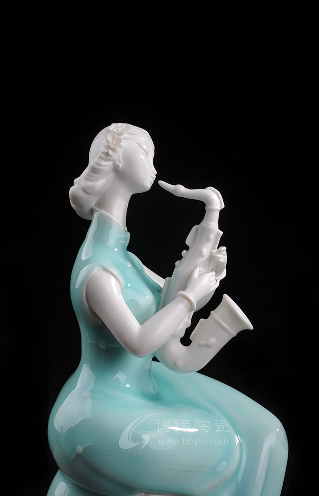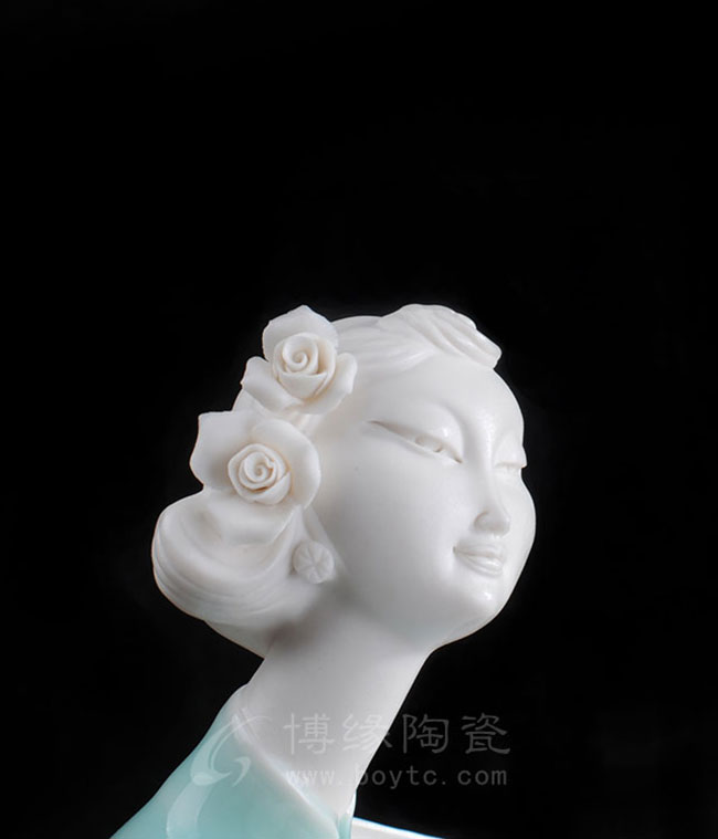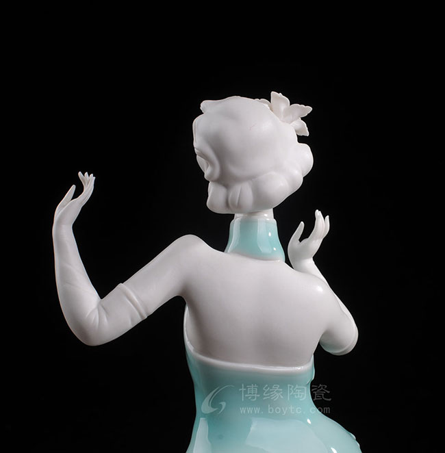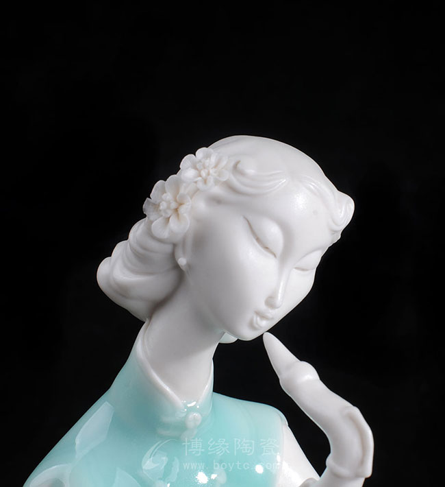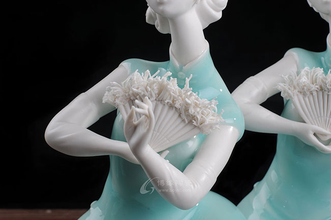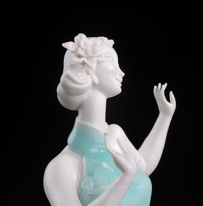 德化白瓷加上个性化的色彩和美学搭配,风格和人物设计也都具有独创性,动作拿捏到位,优雅自然。