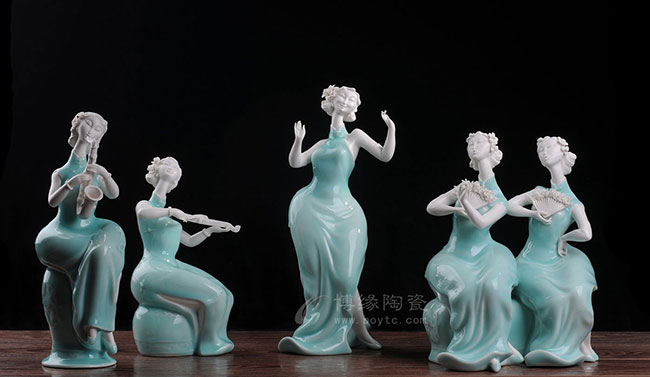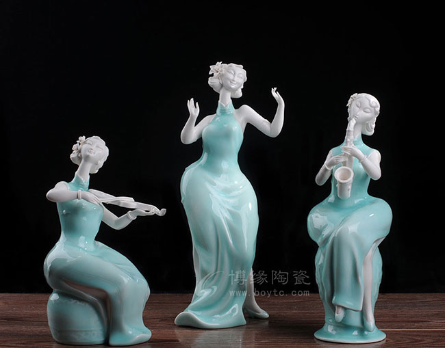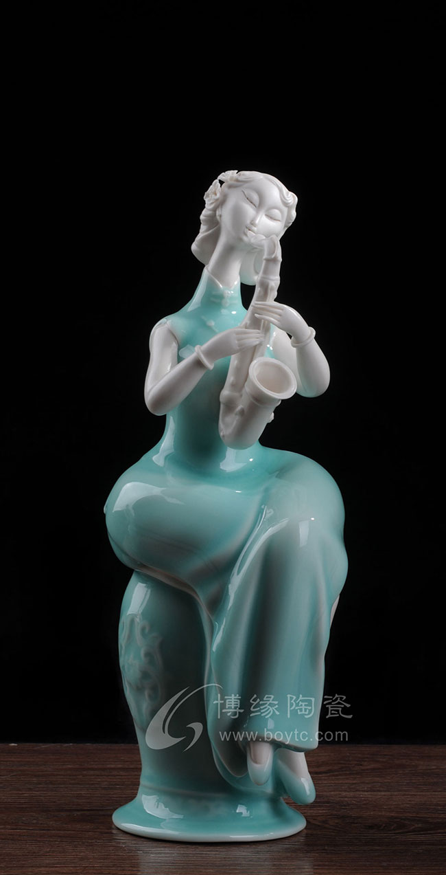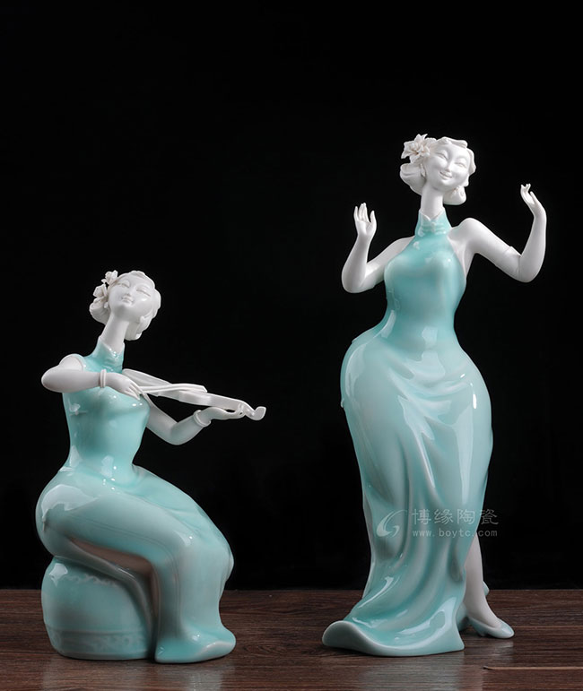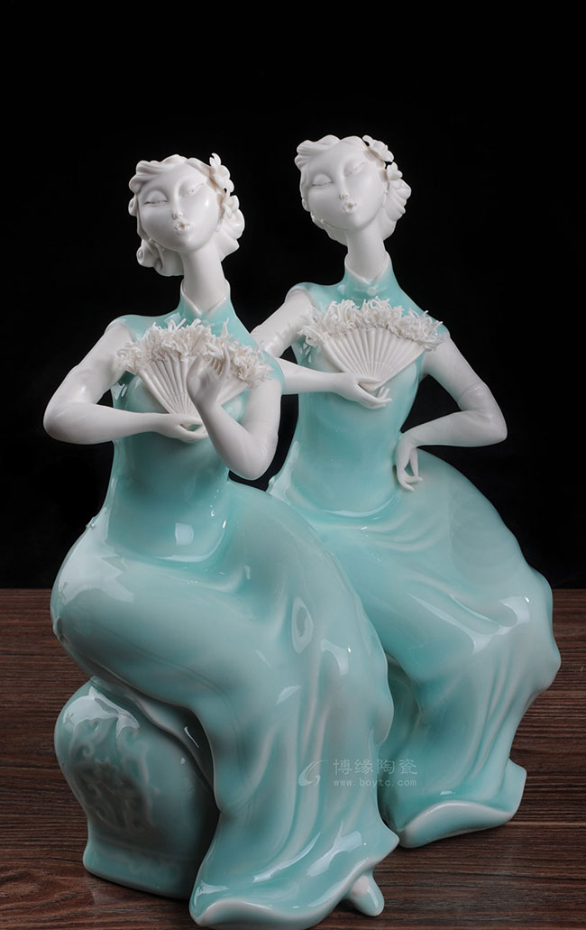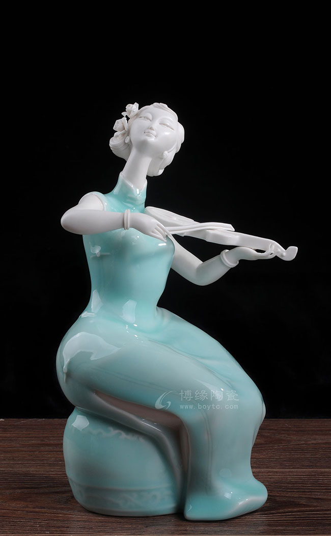 德化白瓷加上个性化的色彩和美学搭配,风格和人物设计也都具有独创性,动作拿捏到位,优雅自然。