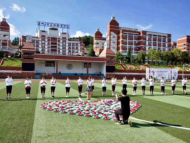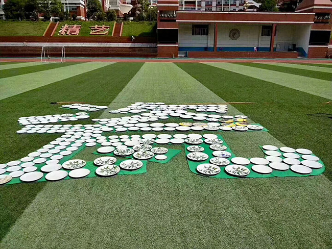 本次活动的主题“瓷爱一生”,“瓷爱”两字,用瓷盘520个组成,“一生”两字用陶瓷壶1314个,象征一生一世,一生幸壶(福)。