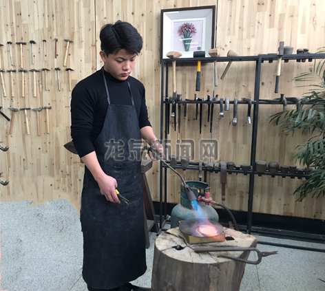 学艺的时光是枯燥而辛苦的,其实在刚开始的时候,作为一名爱玩爱闹的“98后”,廖鑫亮也出现过心烦气躁,甚至想到过放弃。铜雕手艺是项纯手工活,想要做出各种铜制作品,就靠一双手敲敲打打。“制作铜雕的过程,就像驯服一匹烈马,不能急功近利。你需要耐心地利用手中的锤,一锤一个印,打出层次感,顺着它的变化合理地诱导出想要的效果。”廖鑫亮告诉记者,做铜雕靠的全是手上功夫,经常需要连续几小时的劳作,刚开始学时,一天敲下来手臂酸得都抬不起来。有时稍一走神,锤子敲到手指,钻心的疼。