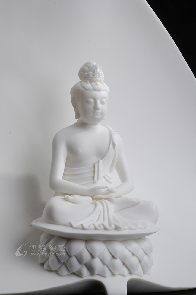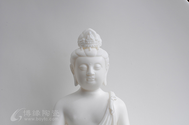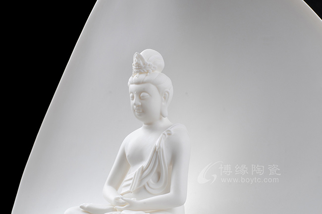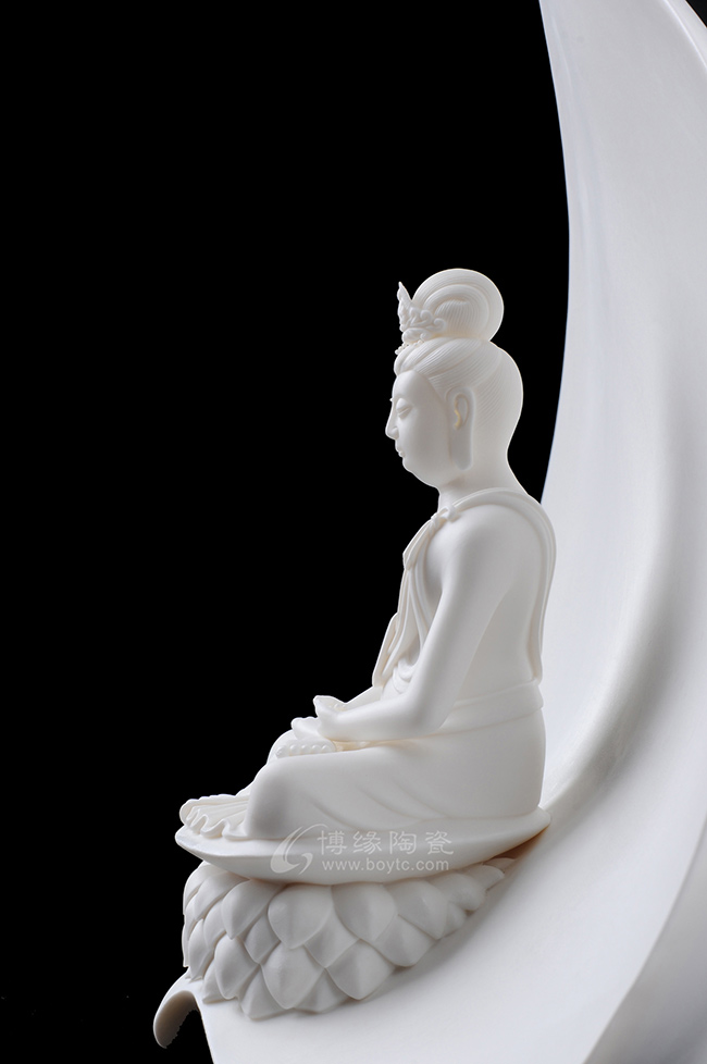 菩提观音坐于底座之上,生动形象,手工制作,线条流畅,凸显白瓷雪白而美观。