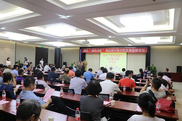 2018年7月22日,当代“宋代名窑”作品大型联展开幕式暨发展高峰论坛在北京陶瓷艺术馆隆重举行。来自中国艺术研究院、中国古陶瓷学会、清华大学、以及钧窑、汝窑、哥窑、定窑、官窑、磁州窑、耀州窑、建窑等相关机构、地区的领导和代表莅临祝贺。 闽龙集团董事长、北京陶瓷艺术馆名誉馆长陈进林、 北京陶瓷艺术馆馆长陈美霞、中国陶瓷终身成就奖获得者张守智、中国工艺美术学会会长杨自鹏 、中国古陶瓷学会会长王莉英、禹州市钧瓷文化旅游试验区管理办公室主任霍保宏、中国工艺美术大师李竹玲分别致辞。来自文物界、文化界、陶瓷界、收藏界的嘉宾及媒体记者100余人参加了开幕仪式。