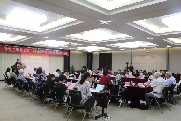 当天下午举行的当代“宋代名窑”发展高峰论坛更是将活动推向了高潮,北京陶瓷艺术馆副馆长聂张成主持本次论坛,现场文化界领导、各窑口艺术家代表、众多资深陶瓷收藏家对当代“宋代名窑”的发展现状与存在问题;当代陶瓷行业如何继承与创新?新生活方式下的当代“宋代名窑”如何发展等议题进行了专题研讨,杨自鹏、梁任生、王莉英、刘培金、侯样祥、邱耿钰、饶中亮、任运启、周莹等席上嘉宾进行了深度分析和激烈讨论,张守智教授做了总结性发言,他指出:人类的生活方式已经发生了巨大变化,但是陶瓷行业的继承和创新都存在巨大的不足,我们要在深入研习宋代美学和宋代名窑的基础上,与时俱进、创新发展,使传统名窑文化融入时代生活,当代陶瓷人还要继续提高文化和艺术素养、加大设计和工艺研究、充分利用新平台、新媒体、新渠道和新消费习惯,在国家大力推进文化自信和陶瓷发展有利政策环境下,加快发展。各地艺术家纷纷表示:本次论坛成果丰硕,受益匪浅,为宋代名窑在当代的传承与发展找到了新的突破。
