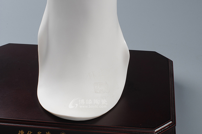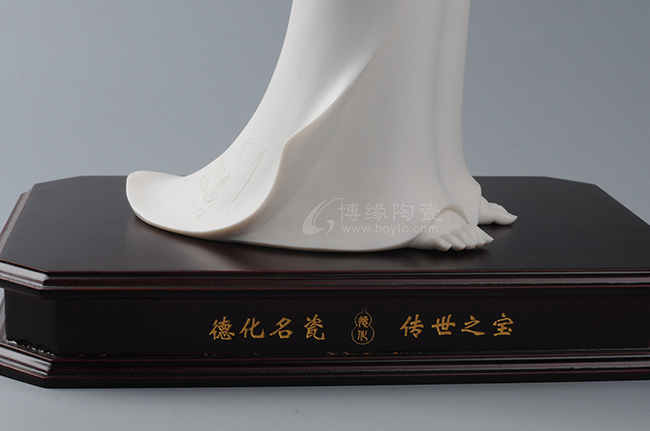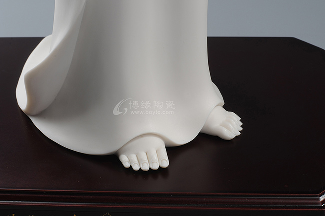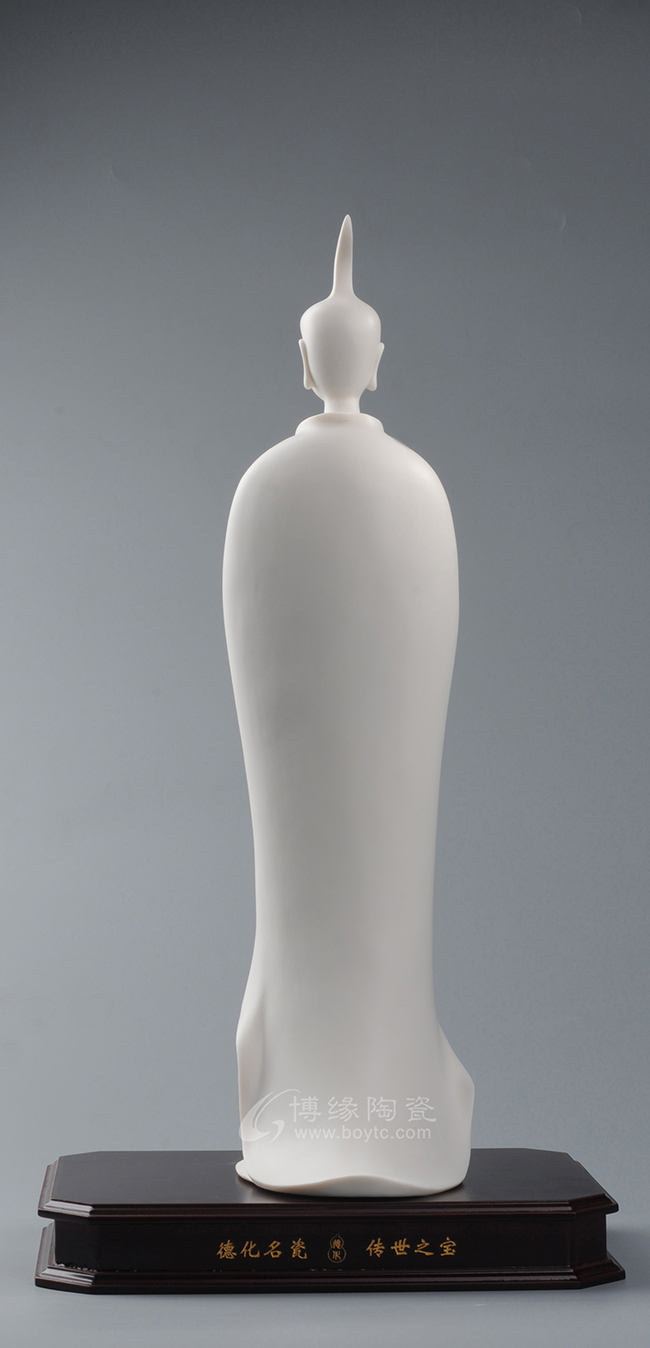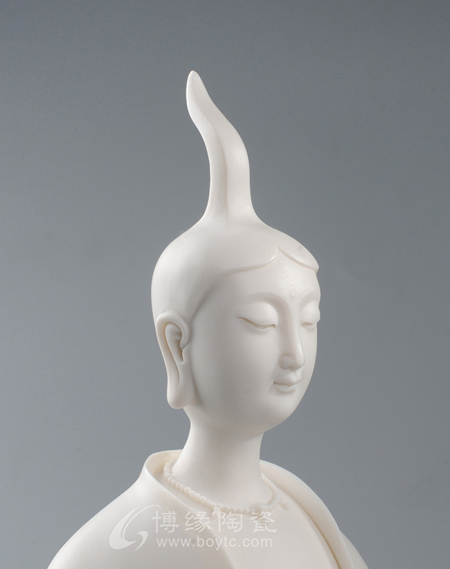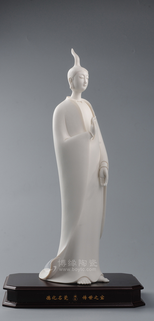 作品既保持了德化传统白瓷的烧制工艺,许多细节也更有了现代的审美特点,适合作为禅意空间摆件。