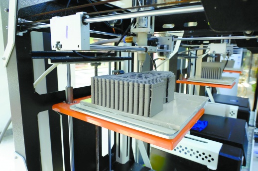 2016年,园区引进了长沙制造的3D陶瓷打印机。通过计算机建模之后,打印头“按部就班”地把陶泥“输出”到相应的位置,一层层垒起高质量的实用型陶瓷。
