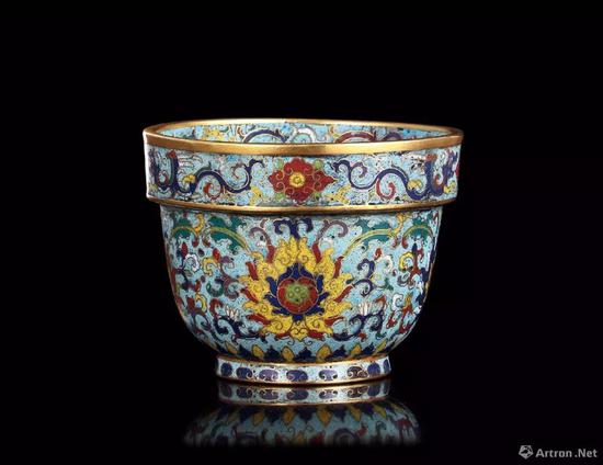 清乾隆 御制铜胎掐丝珐琅缠枝莲纹手杯