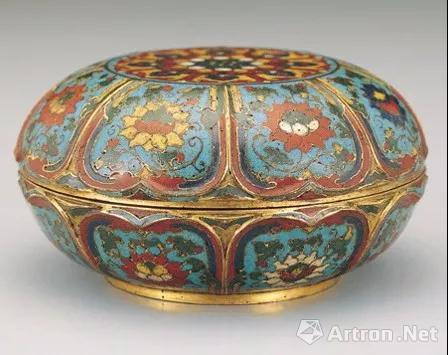 从明代景泰年间王佐所言可知,宫廷制作的掐丝珐琅已有很高的制作水准。台北故宫收藏有一件落“大明景泰年制”款的掐丝珐琅番莲纹盒,以松石蓝为底色,另配以藏青、绿、黄、红、白诸色,其掐丝线条均匀细致、形状优美,器表光滑而圆润,体现除了高超的掐丝技法和考究的打磨工艺,可代表景泰年间宫廷掐丝珐琅器的水准。不过元、明两代,缺乏可作标准器的作品,至今仍难区别两代作品的具体差异。继明代之后,清代宫廷极大地推动了掐丝珐琅在中国的发展,这其中又以乾隆皇帝的作用最为突出。乾隆朝的掐丝珐琅,使用的釉料达到了将近 20 种,有所谓“十八色成造”之说,这大大突破了台北故宫宣德标准器的 6 种用色。此外在器型上,乾隆朝作品也更为种类繁多,特别强调仿古类器型的制作。