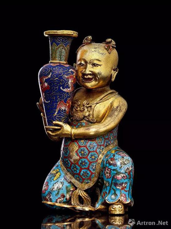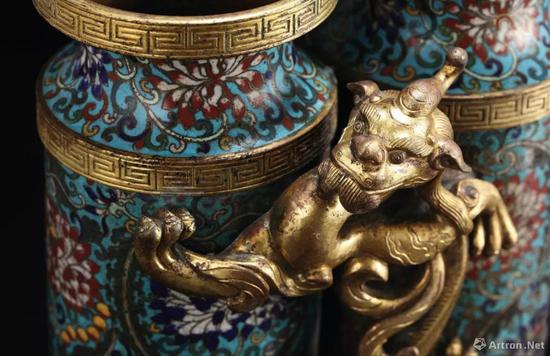 说到这儿,还得提提宫廷艺术和文人艺术的区别。宫廷艺术,以华美为贵,要突出的是国家的强盛富有以及皇家威仪的庄重;文人阶层虽在富贵上敌不过皇家,但却反而用朴素清雅的艺术观,强调自身精神追求的绝俗超然。宫廷与文人,他们所代表的两类艺术观点本无高下。但颇为值得疑惑和深思的是,我们现代人对宫廷掐丝珐琅器的艺术成就与历史文化价值的认可度并不高,这从拍卖市场给这类作品的价格反馈便可见一斑。近 20 年来,铜胎掐丝珐琅的整体涨幅不大,鲜见千万级的成交结果,出现大几百万元的作品已属不易。当嘉道瓷器都能被市场热捧的时候,你居然还能在知名拍卖公司的大拍季里,淘到几万元的乾隆朝宫廷掐丝珐琅器。