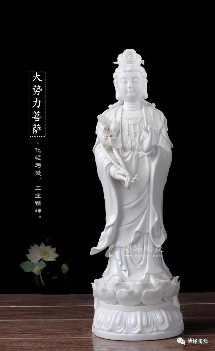 大势至菩萨的梵文音译是摩诃那钵,他是西方极乐世界阿弥陀佛的右胁侍。大势至菩萨以独特的智慧之光遍照世间众生,使众生能解脱血光刀兵之灾,得无上之力量,威势自在,因此,大势至菩萨被认为是光明智慧第一,所到之处天地震动,保护众生,免受邪魔所害。