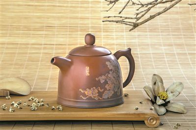 同时,因为坭兴陶泥料资源丰富,目前完全不需要掺杂其他任何物质,也不会用其他泥料来假冒,绝对绿色环保和原生态。另外,坭兴陶泥料质地细腻,可塑性强,既适合于做小件,也适合于做大器,更可以进行雕花、刻字等多种装饰。所以,即便是做茶器,吴莹也会根据坭兴陶本身的特点来发挥。因此,很多坭兴陶壶上都会有精美的雕花和刻字。她还设计《荷塘月色》的茶具套装,茶盘做成荷叶的样子,盖碗则设计成莲蓬的款式,看起来古雅而富有诗意。“茶盘不泡茶又可以立起来摆放,这是一个很好的艺术品,还可以独立作为果盘使用。”