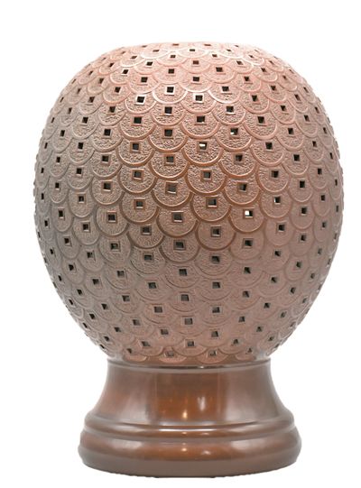 除此之外,吴莹还根据坭兴陶泥料细腻的特点设计了《富甲一方》这样的镂空作品,也非常具有个性。