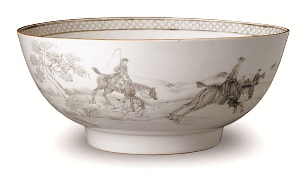 【清】带捕猎图的外销潘趣碗 景德镇瓷 1722—1735年