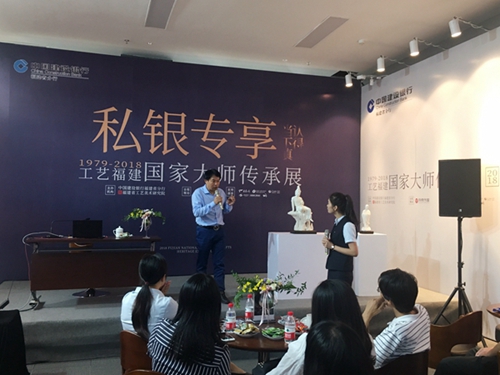 “认得当下真——2018工艺福建国家大师传承展”正在福州建行大厦展出中。9月29日,建行私人银行举办“认得当下真”私银专享·大师面对面——陶瓷专场讲座活动,中国工艺美术大师连紫华为大家带来一场名为《德化白瓷的古往今来》的主题讲座。