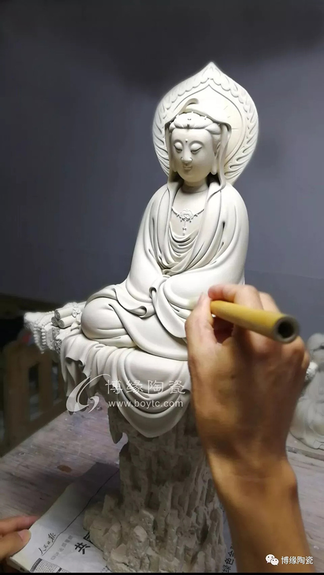 早在明代德化白瓷佛像就名声在外,一代“瓷圣”何朝宗佛像名作流传后世,成为世界各大博物馆收藏的珍品,更对佛像雕塑史上产生深远的影响,形成“何派”雕塑,其开创的捏、塑、雕、刻、刮、削、接、贴八字技法延用至今。