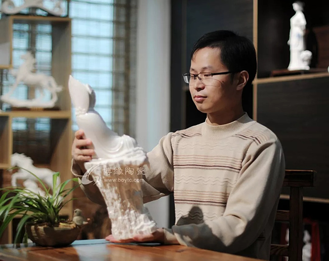 10多年潜心研习德化陶瓷文化,博采众长,融会贯通,自成一格。2003年起从事设计工作,2006年创办中华陶瓷网开始大量接触陶瓷设计、开发、销售,与众多当代德化陶瓷艺术家学习交流,多次到全国陶瓷产区了解陶瓷文化,组织参加50多场次展览。2011年创办福建省德化县博缘陶瓷文化有限公司,专业事陶瓷设计、创作,主要作品有佛像、人物摆件、茶具等,所创作品多次荣获国内外金奖,深受好评。