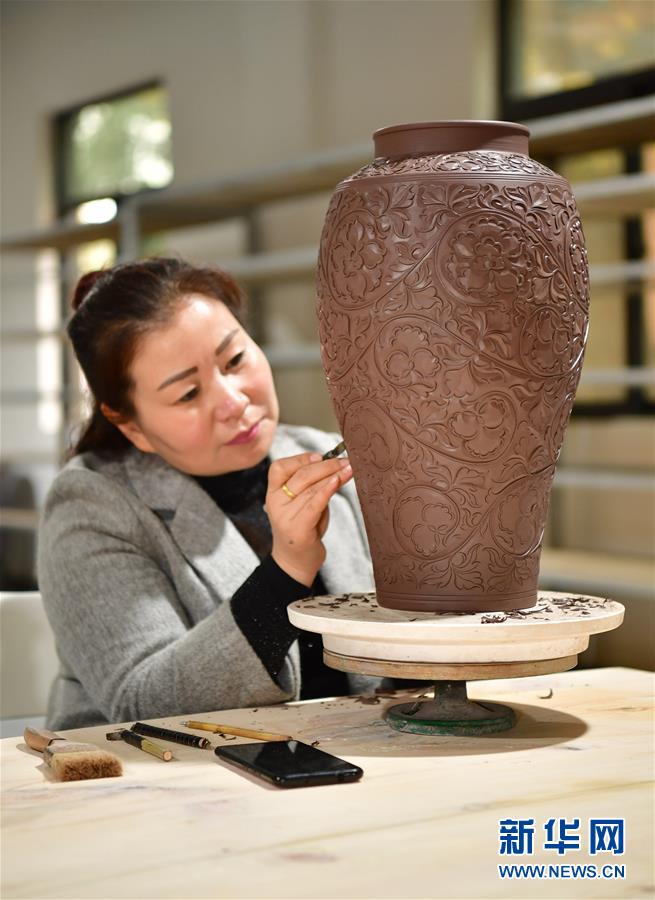 10月21日,在耀瓷小镇创意园区大师坊内,一名工作人员在进行创作。10月21日,在耀瓷小镇创意园区大师坊内,一名工作人员在进行创作。