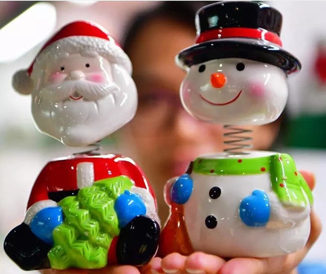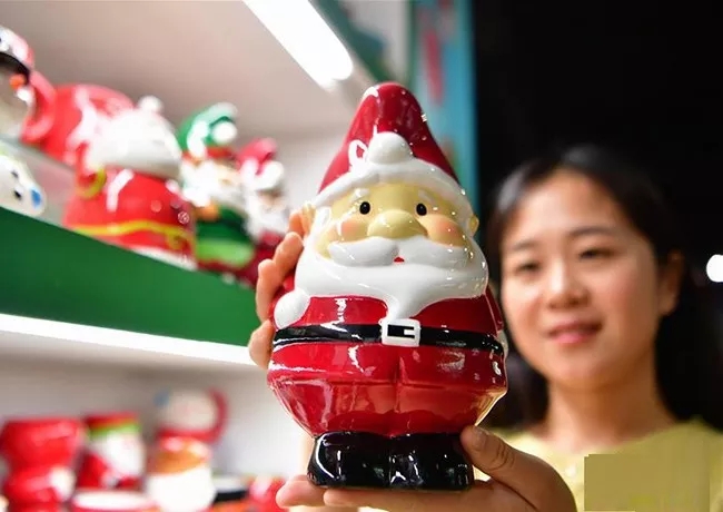 10月23日,德化顺美陶瓷有限公司的创作人员展示将出口到80多个国家和地区的圣诞节瓷器。