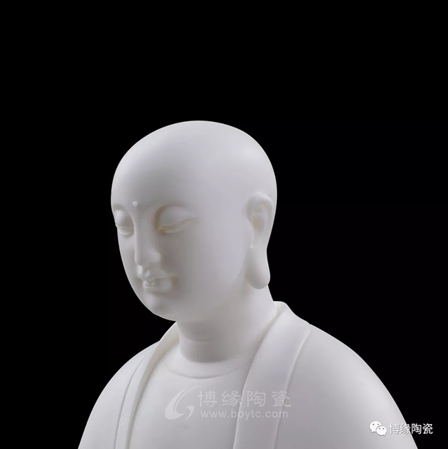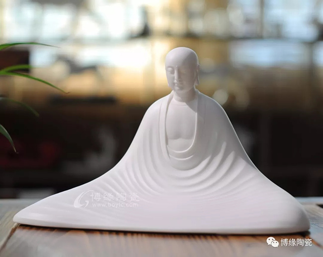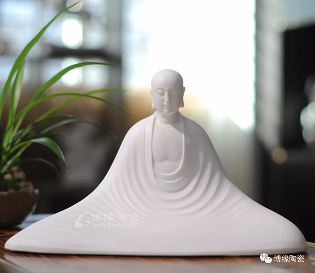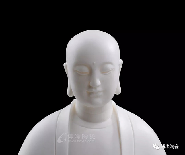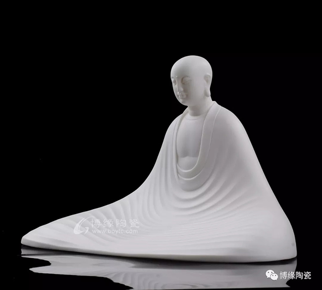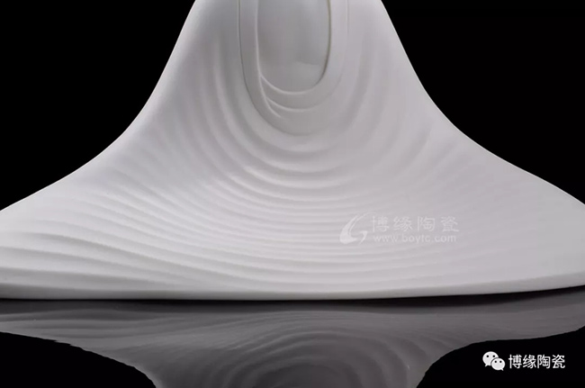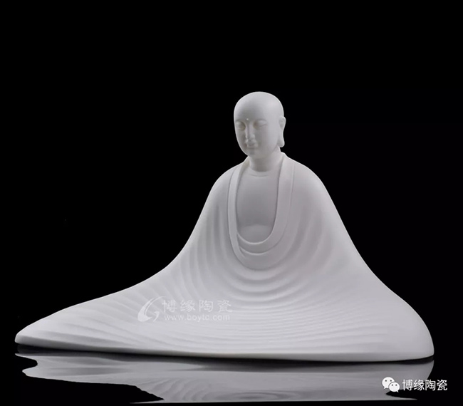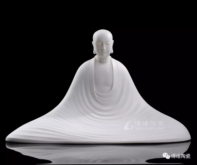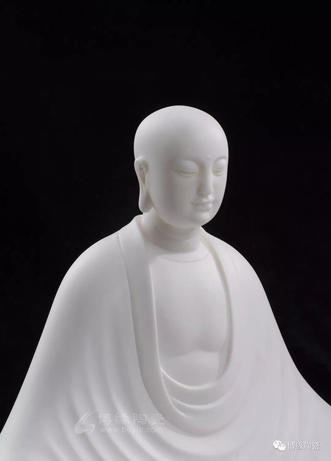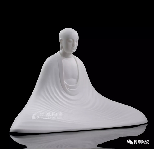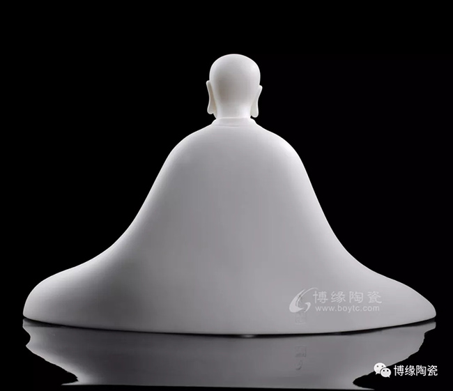 作品《地藏》选用德化的高白瓷泥这一材质,以传统的地藏造像为原形;以稳固的三角形作为整体型式,衣纹用构成的形式表现,有如水之静。