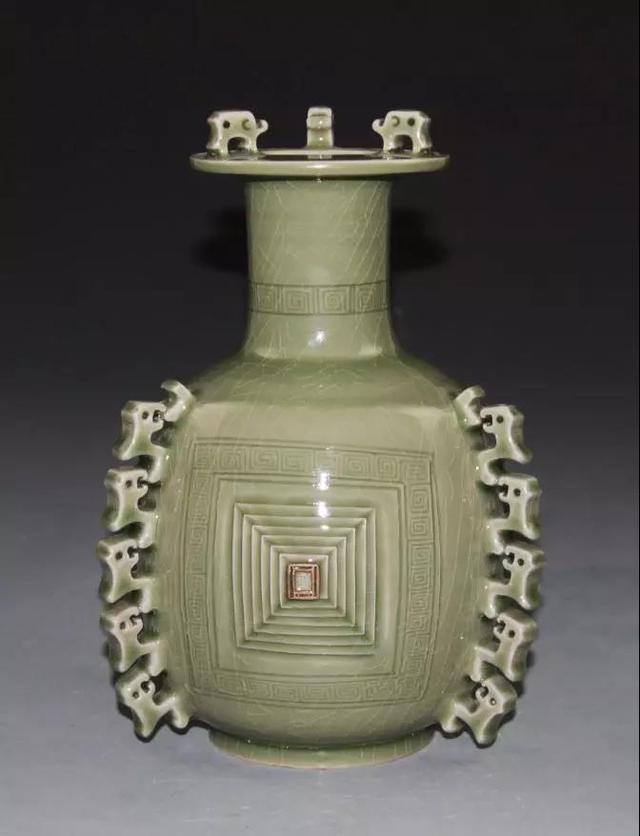 孟树锋●耀州青瓷.刻划花一百四十二回纹之三回瓶