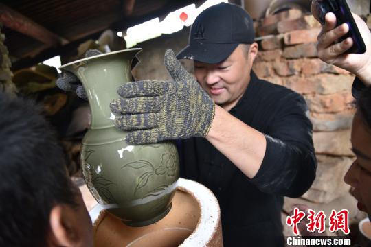 有着15年烧窑经验的“烧窑能手”周先有戴着厚厚的手套,小心翼翼地打开匣钵。刹那间,青山翠木仿佛黯然失色,如冰如玉的青瓷尽揽自然苍翠。