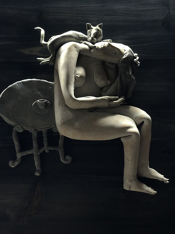 教师张丽芬《女人与猫系列》——现代陶艺类银奖