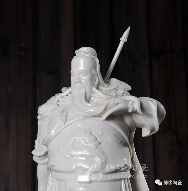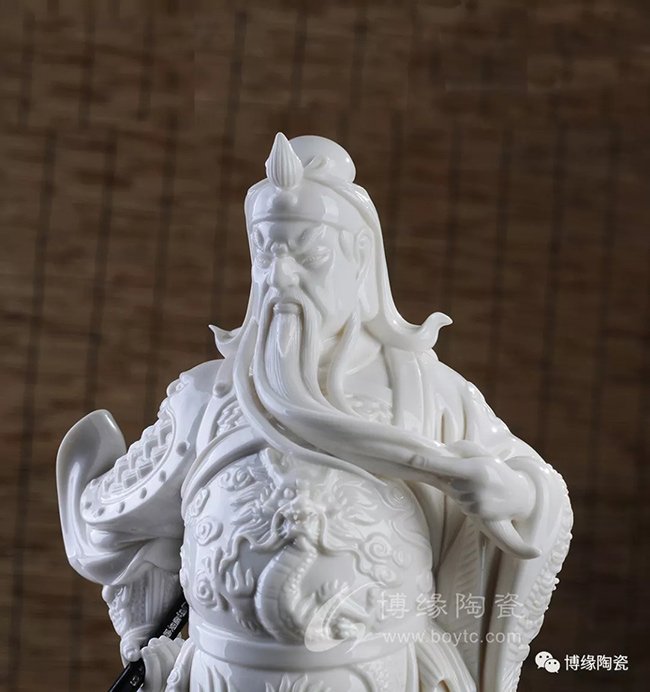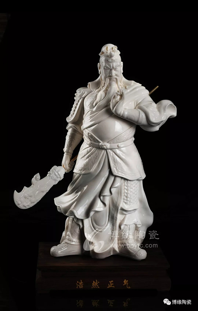 关公身长九尺,髯长二尺,面如重枣,唇若涂脂,丹凤眼,卧蚕眉。终日随同刘备,八方征战,不畏艰险,武力是数一数二的人物,在三国演义中侧重刻画他神威勇武的一面,初对付黄巾军时先斩程远志,后在汜水关前“温酒斩华雄”,虎牢关前“三英战吕布”。 “神威能奋武,儒雅更知文。天日心如镜,春秋义薄云”。