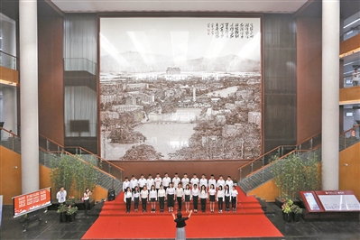 线描勾勒,淡彩铺陈,晨雾缭绕,风光旖旎……日前,一幅名为《山水华园》的巨幅陶瓷壁画的落成剪彩仪式在华工五山校区图书馆举行。该幅陶瓷壁画高12米、宽12米,由华工建筑设计研究院、设计学院的专家进行创意设计和完善,由校友企业烧制捐赠。