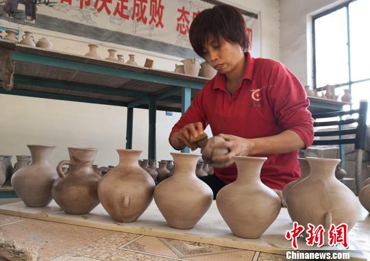 近年来,甘肃省白银市平川区以打造“西部陶都”为目标,逐步形成集技术研发、产业发展、文化创新、生产销售为一体的陶瓷产业体系。图为平川区陶瓷小镇艺人制作陶瓷。