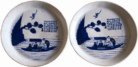 20多年前,笔者购得一对清代青花瓷盘。两盘大小、造型及纹饰雷同;每盘直径26厘米。此对盘属民窑所制,但是盘心所绘诗情画意的画面,却令人过目难忘。