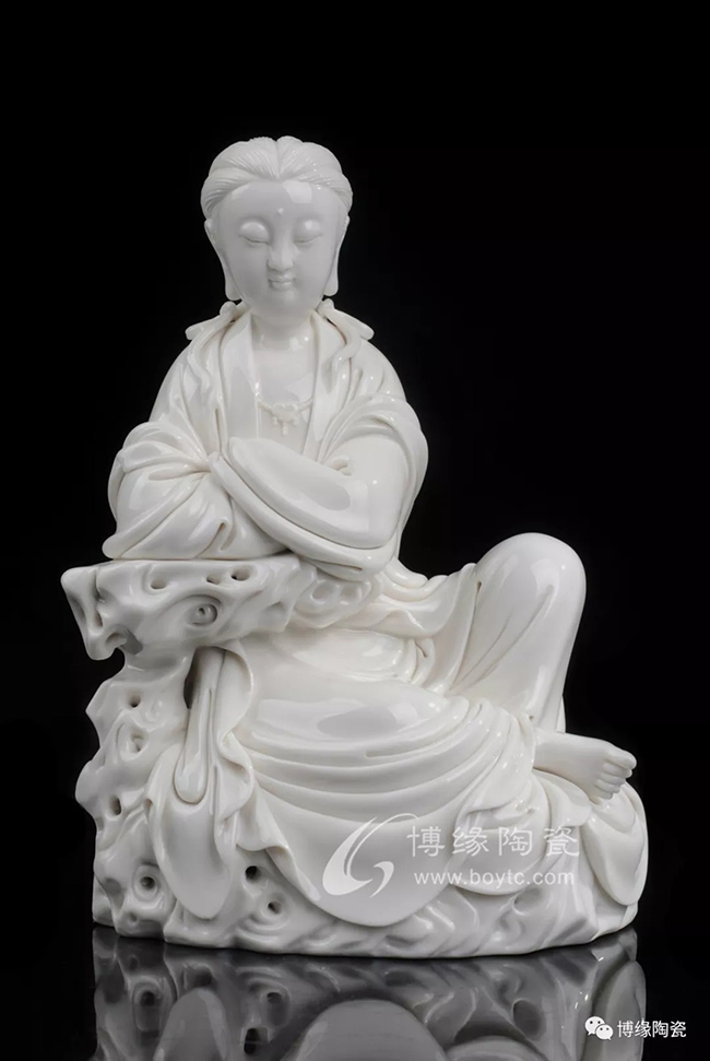 威德观音:左手持莲花,箕坐岩畔。寓意排危除障,一路平安。