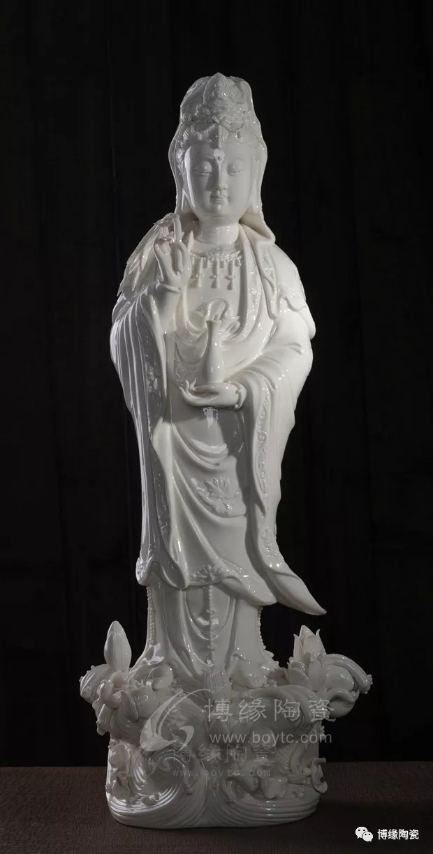 洒水观音:又称滴水观音。一手持净瓶做泻水状,一手作法印或持执杨柳枝。有救赎众生,解除生者苦难的吉祥寓意。