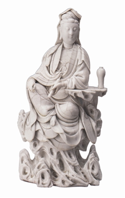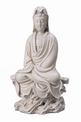 明代坐岩持经观音, 何朝宗·款,高36厘米