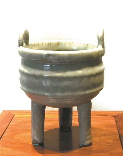据主办方介绍,本次展品中有不少藏品是国家馆藏和民间藏家收藏的宋瓷精品。其中一件南宋官窑粉青釉鼎式炉价值高达千万元。据藏家称,此件官窑瓷器施粉青釉,釉面满开细片,鼎式古朴,造型典雅高贵,受宋代皇室崇古尚礼之风影响颇深,是宋代官窑的珍品。
