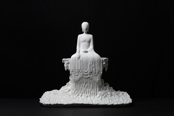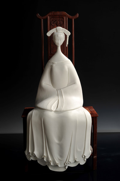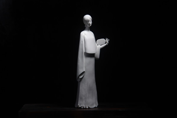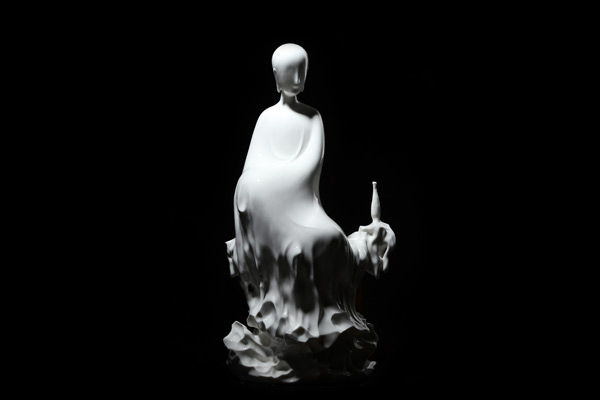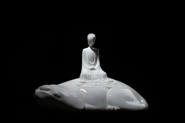 或许是感觉到德化瓷艺需要新的突破,在创作了大量宗教题材的作品后,苏献忠第一次否定了自己,于是他报名参加了德化县与中央工艺美术学院联办的艺术进修班。进修回来,苏献忠立即投身创作“百戏”系列,以现代雕塑语言表达汉代百戏的神韵。那一时期,他始终在探索,如何从传统文化中挖掘出一些现代元素,接连做了女性题材的“江南”系列和“水浒”系列,深受广大收藏爱好者的喜爱。