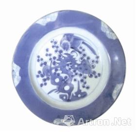 这件清代德化窑青花蓝地开光纹折腰“喜上梅梢”纹瓷盘(见图),高5.4、口径23、底径8.5厘米,为清代福建德化窑器物。器呈宽板沿、浅腹、圈足、撇口,瓷盘通体施以白釉,胎体致密,釉色白中闪青,青花设色淡雅逸丽,仿若春风拂面,醉人心扉:图案花纹清晰,浓淡相间,纹样微凸,具有很好的视觉效果。青花色泽蓝中闪灰。色料鲜艳明亮,传递出一种灵动率真之气:瓷盘装饰纹样随作者的匠心而安排,莫不自然质朴,恰到好处。瓷盘中心绘一只喜鹊栖于梅花树梢上,可见梅花树梢似在微微摇颤逗人情趣;而栖于树梢上的喜鹊则体态舒展,姿态雍容,灵动鲜活;瓷盘外壁绘五组花卉纹,融洽和谐,疏密有致、主客呼应、繁而不乱。整个瓷盘画面情景交融,充满了蓬勃的盎然生机,给人以欣欣向荣之感。“梅”与“眉”音同,故借此构图表示“喜上眉梢”,寓意人逢喜事精神爽,喜形于色好事多。