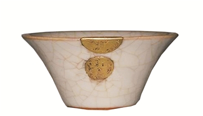 掌握锔瓷这门手艺的人被称为锔瓷匠,他们常年穿行街头巷尾,服务百姓人家。上世纪60年代,上海的弄堂里常能看到锔瓷匠的身影,他们中很多是江西人,一根扁担,一头挑着工具箱,另一头装着用来软化锔钉的烤炉,扁担头上斜挂着类似胡琴弓弦的钻杆。工具箱打开,锔瓷的家什一件件摆出,最惹眼的是一盒亮晶晶的锔钉。锔钉呈菱形,两头有尖尖的小钩,金色的是铜制的,银色的是铁制的。锔瓷匠先用毛刷清理碴口,对拢破瓷;再用一根带钩绳线,把钩挂在瓷沿上,绳线从瓷器底部绕几圈把破碴加固。接着,锔瓷匠一手拉弓,一手紧握金刚钻,双手如拉二胡般有节奏地转动,钻杆发出嗡嗡的响声,低沉呜咽。钻孔的深浅需要恰到好处——钻孔浅了,锔钉扒不住瓷片,裂缝依旧;钻孔深了,洞穿瓷片,瓷器就会报废。通常,在薄薄的瓷片上钻到三分之二处,是最合适的。练就这手绝活,需要多年的历练。孔洞钻好后,刷去瓷屑,安装锔钉,小铜槌轻轻敲击,一只只锔钉就牢牢地嵌在了瓷器上。锔钉镶好后,再把油灰填入缝隙,抽出一方揩布,将瓷器揩干净。修好的瓷器,严丝合缝,完好如初,金色的锔钉就像撒在瓷器上的花瓣,为旧瓷添彩。