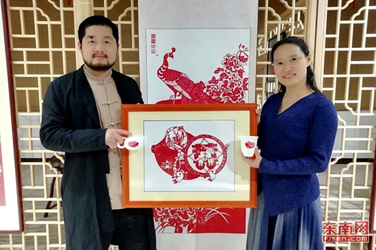 为迎接2019年,漳浦县“一凡窑”陶艺师王兴虎与漳浦剪纸艺人游金美将世界级非物质文化遗产漳浦剪纸与白瓷进行碰撞,携手打造新年生肖瓷茶具《祝福2019年》。