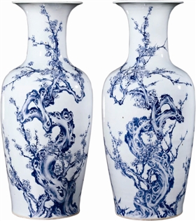 民国 王步作青花岁寒三友图观音瓶(一对)