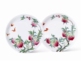 清雍正 粉彩过枝八桃五蝠福寿双全盘(一对)