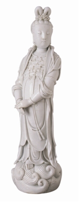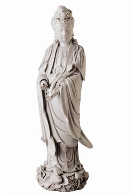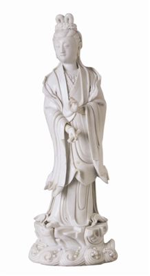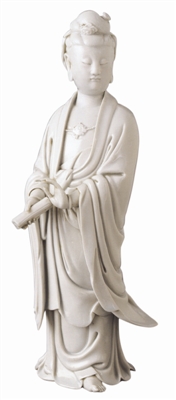 清代持经书立礁观音像 (博及渔人·款),高28厘米